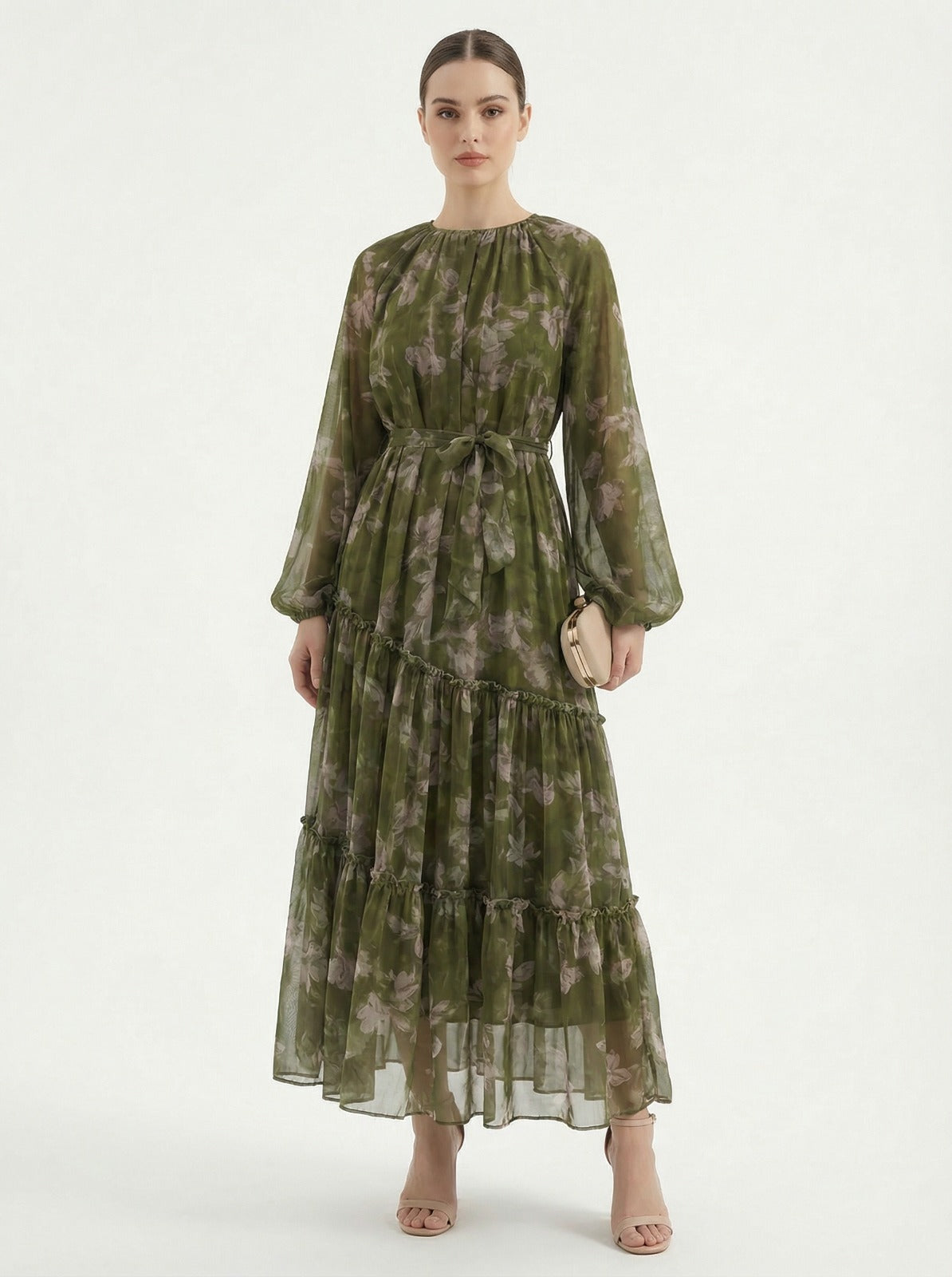 Women'S Long Chiffon Printed Dress in Middle Eastern Muslim Style